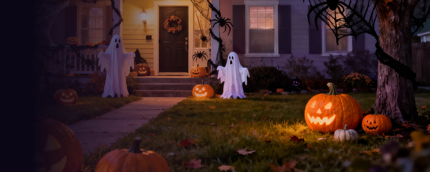 HOMCOM Spooky Hanging Pumpkin Ghost Outdoor Light & Sound