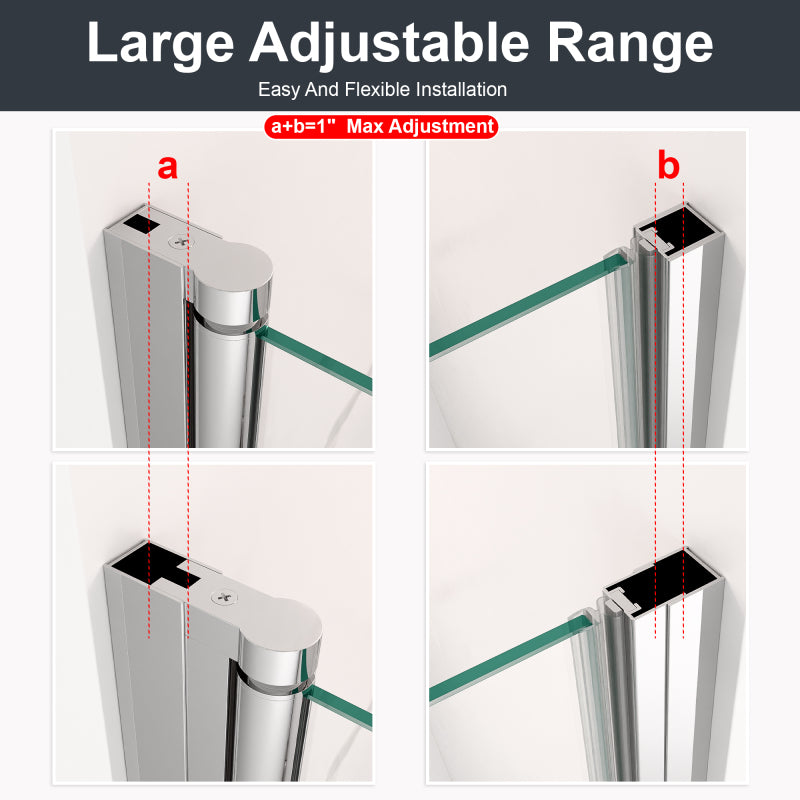 The shower door adopts magnetic sealing design on the side and waterproof sealing strip design
