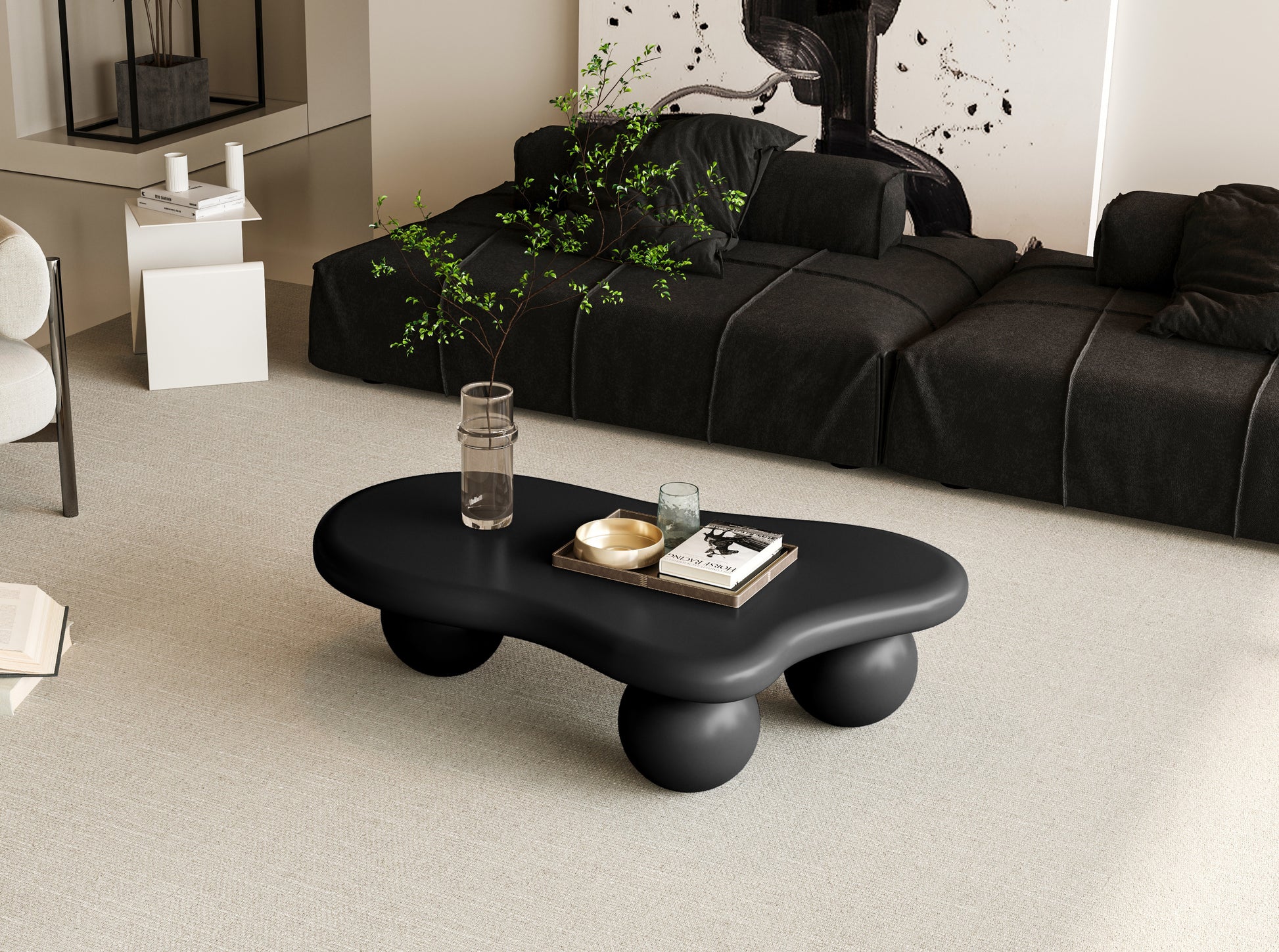 Modern Black Cloud Coffee Table for Living Room, 3 Ball Legs