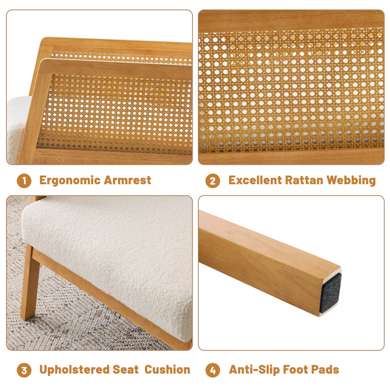 Mid-Century Sherpa Lounge Chair for Living Room, Solid Wood