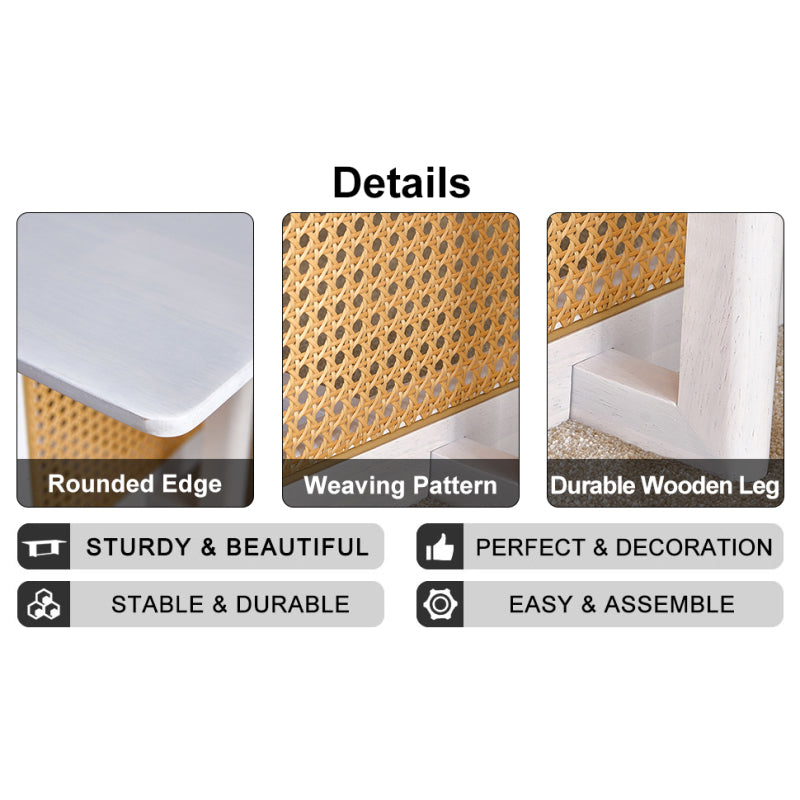 - Rattan-Style Legs: The support legs are designed with a rattan-style pattern, adding a touch of natural charm while ensuring structural stability.Stable Structure: The well-designed leg structure ensures the stability and safety of the coffee table during use.