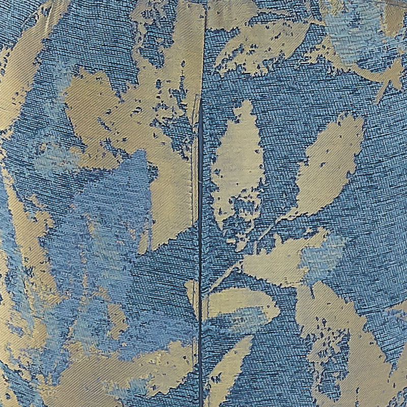 Summary | Step up your dining experience with this stylish set of 2 counter-height bar stools.Crafted with a robust metal frame and adorned with eye-catching black and gold footrests, these stools feature foam-filled seats covered in a striking blue and gold jacquard fabric.Perfectly suited for any modern kitchen or dining area.Add a splash of sophistication and practical elegance to your space with these chic stools.Due to the nature of fabric cutting, the pattern on each chair's back may vary.This variance is not considered a valid reason for product return. |
