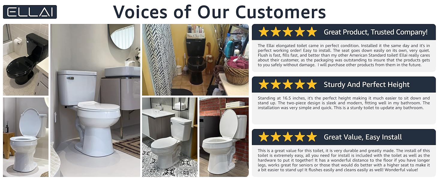 ELLAI Modern ADA Chair-Height Toilet for Bath, 1.28 GPF