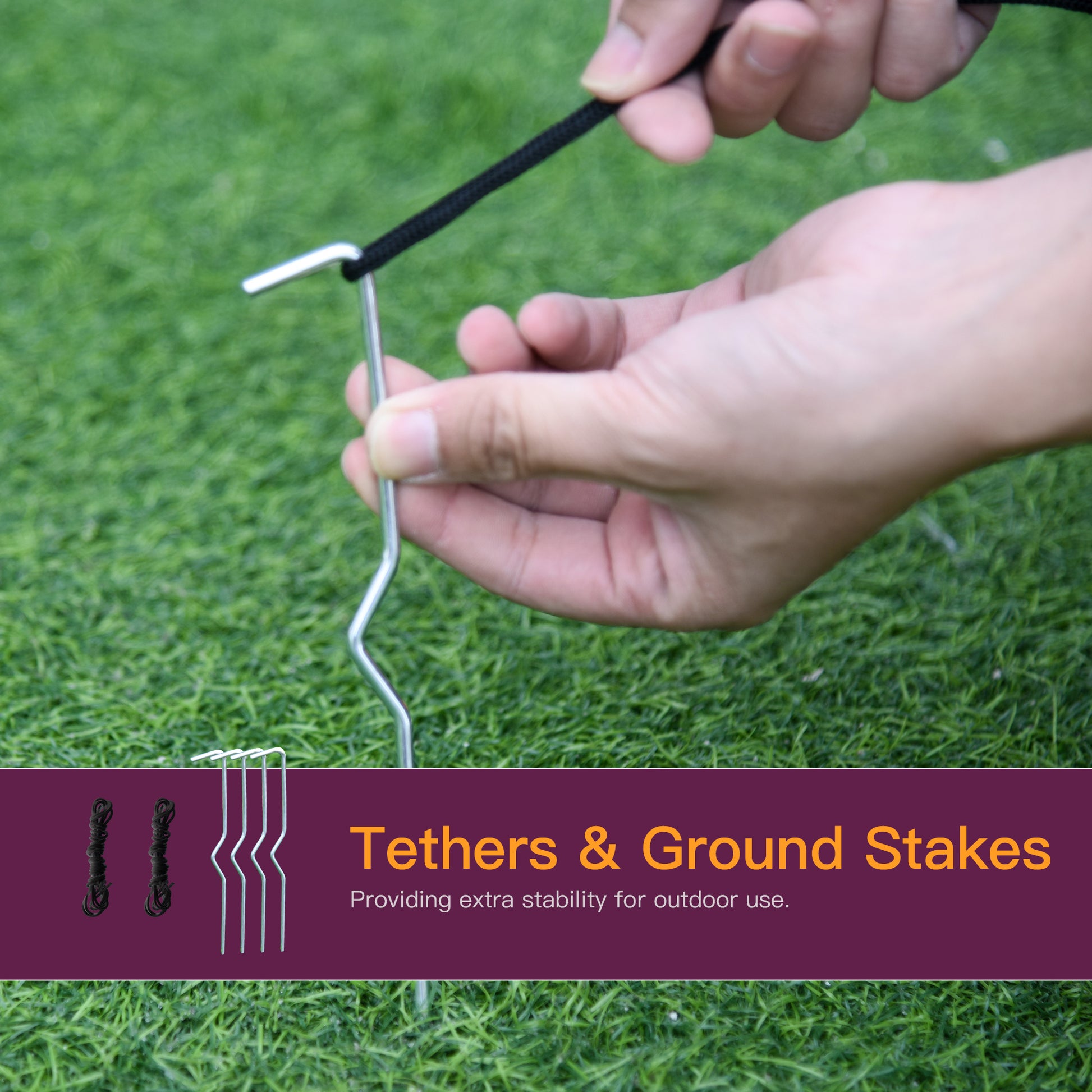 - - Includes four ground stakes and two drawstrings to help keep it anchored on windy nights