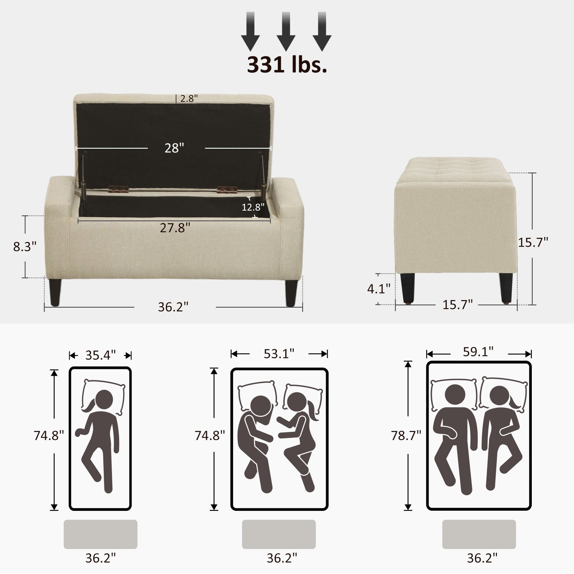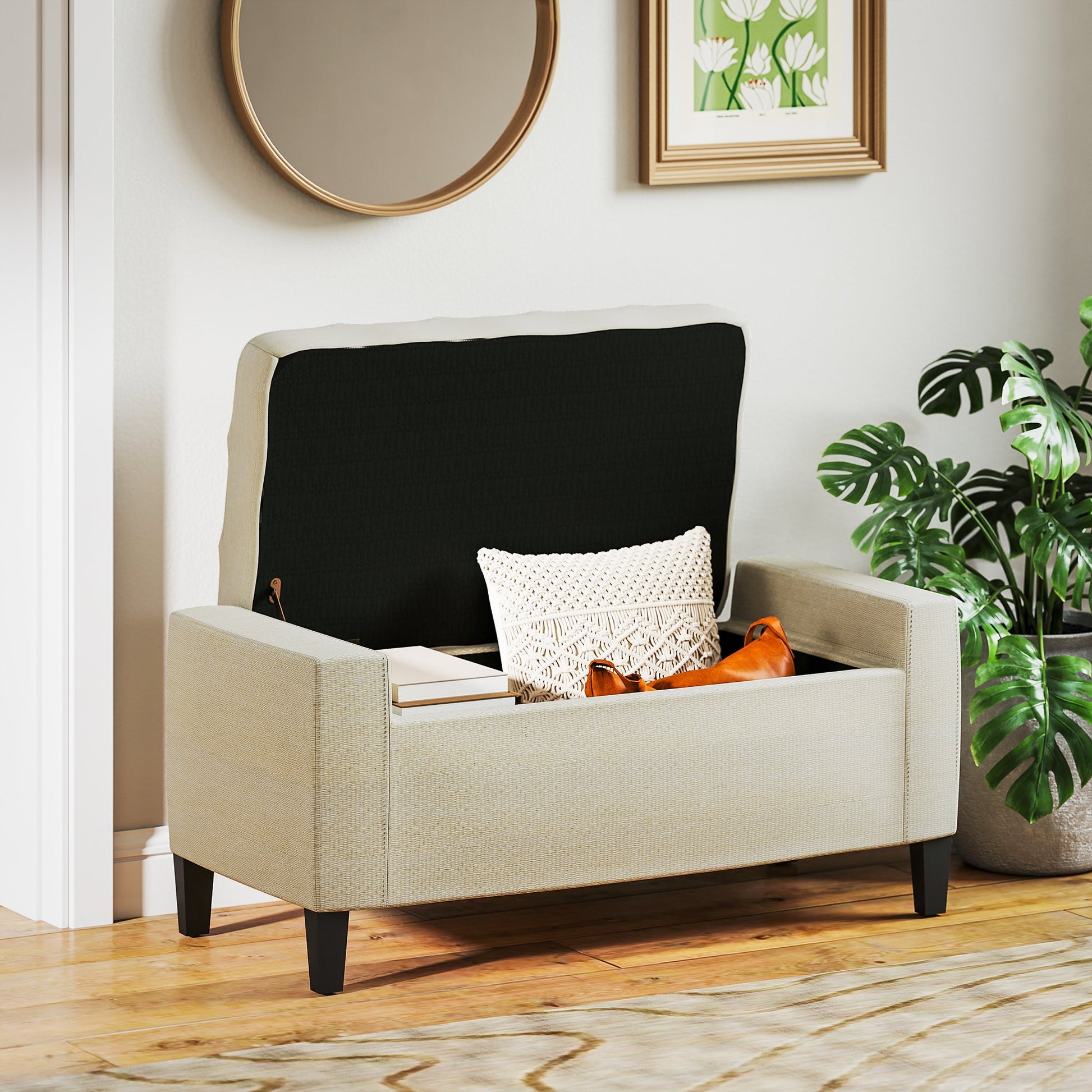 HOMCOM Linen Ottoman Bench for Entryway, Lift-Top Storage