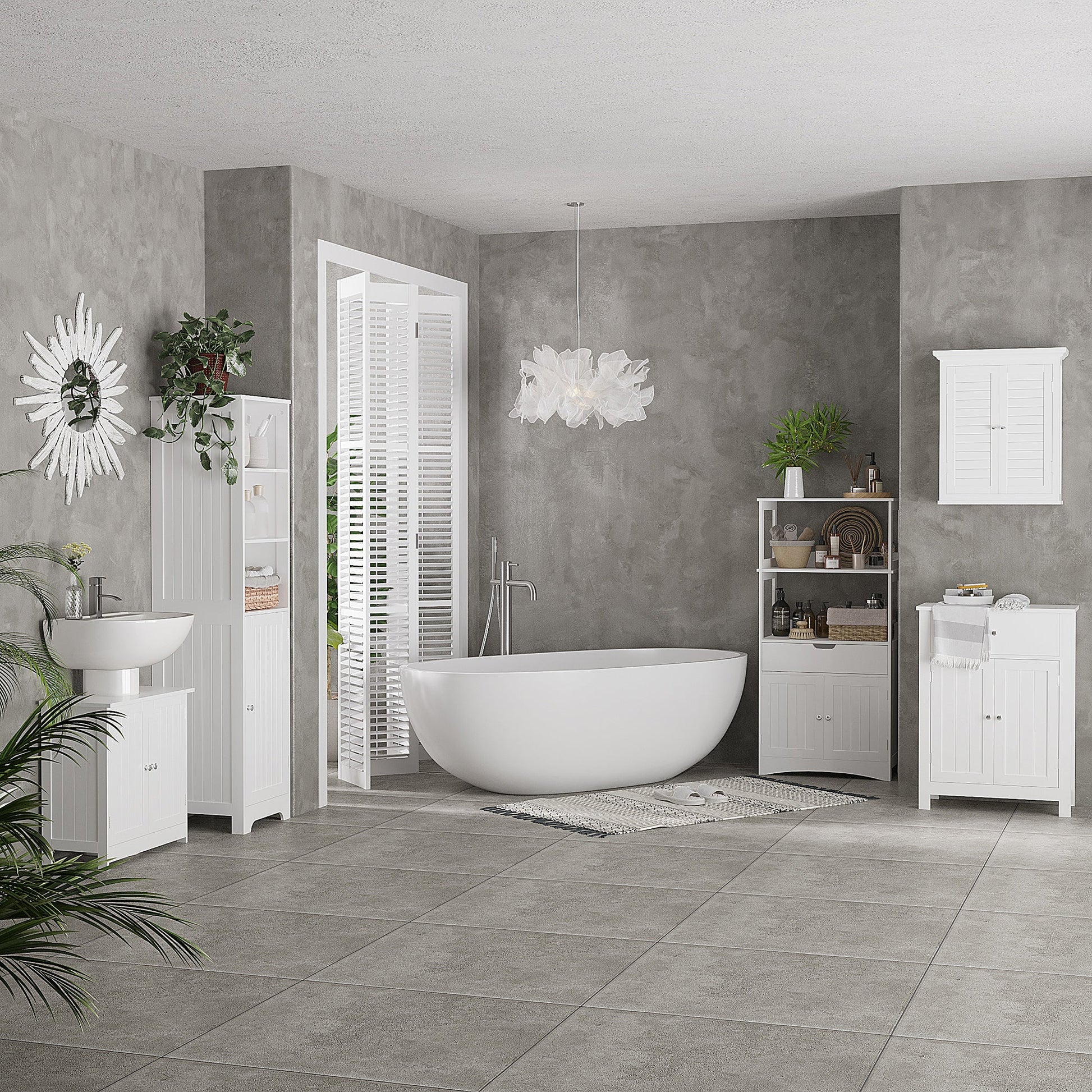 Have to store half your toiletries in the bathroom and half in the hall unit? This bathroom cabinet from HOMCOM will be your storage space saving grace. Our narrow bathroom vanity can store shower accessories, toilet paper, and towels all in a spot. Storage is compact because it all goes under the sink. Stop doing the math about what will fit in your place; take back your bathroom space with this pedestal sink cabinet by HOMCOM.