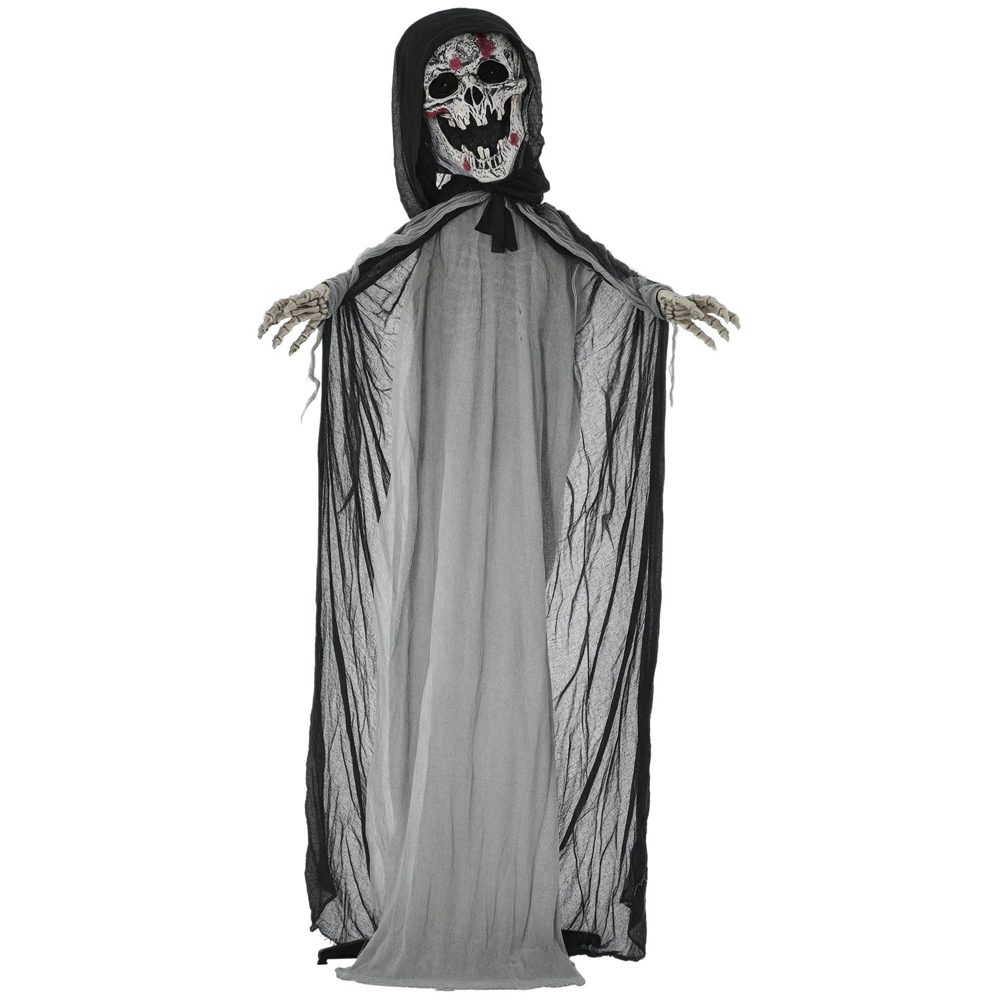 Experience next-level fun and frights with the scary Halloween skeleton witch prop for your Halloween decor. Activated by sensing motion, her eyes glow a wicked red light. Her bones blink an evil green, making howling and chain sounds while she moves her head and waves her arms back and forth to terrify trick-or-treaters. With Outsunny's line of Halloween yard decorations, trick-or-treaters will think twice before double-dipping in your candy bowl.