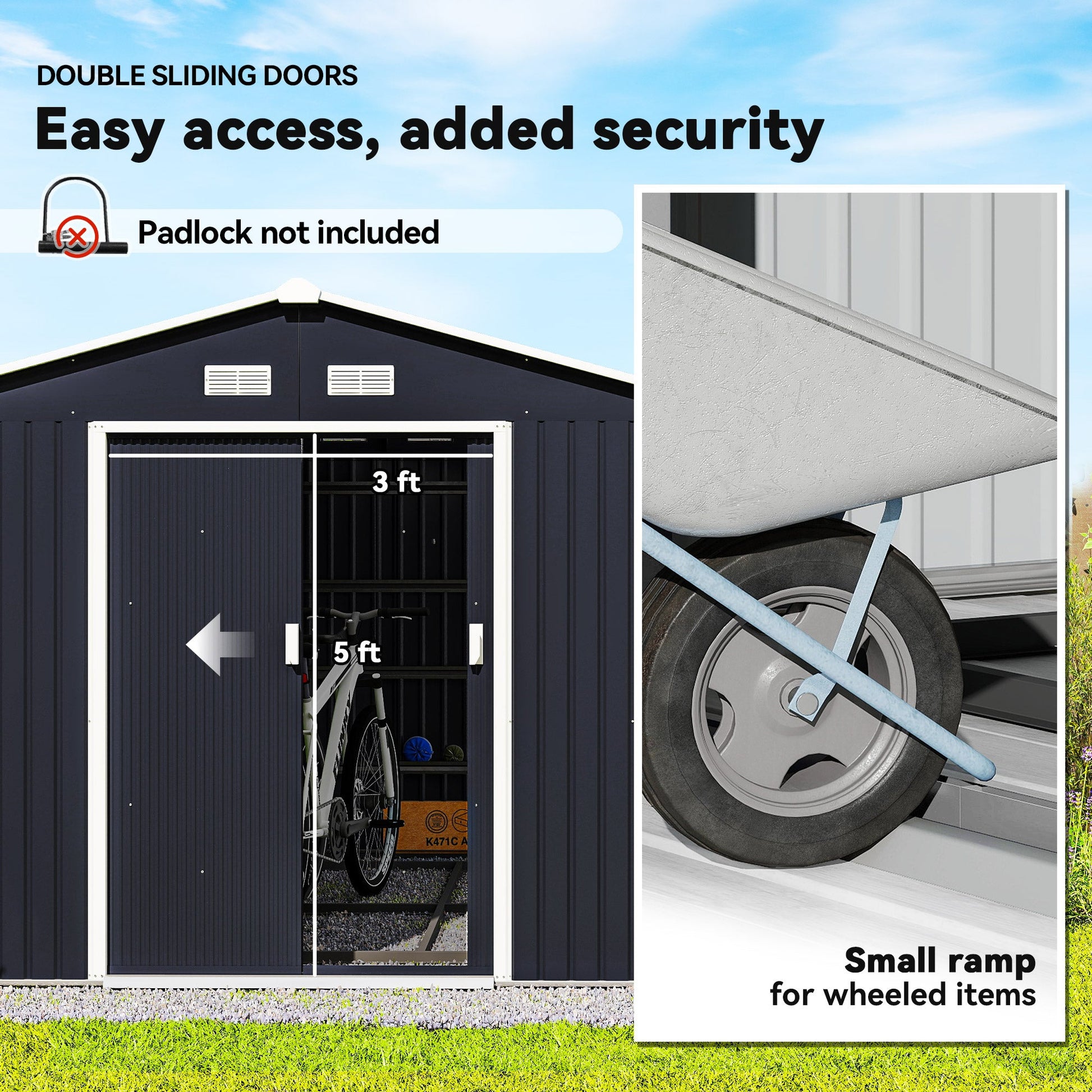 Outsunny Metal Backyard Shed with Lockable Doors & Vents