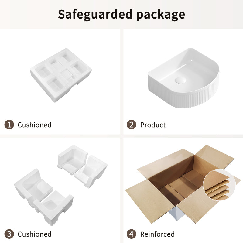- Secure Cushion Package: We've designed our packaging to protect the ceramic restroom sink during shipping, ensuring it arrives in good condition. For help, reach out to us confidently.