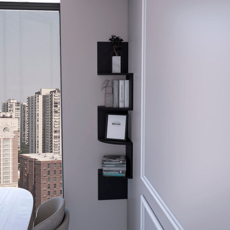 FM FURNITURE Rosebud Corner Floating Shelf: Modern Full-Wall 4-Shelf Unit ,Black