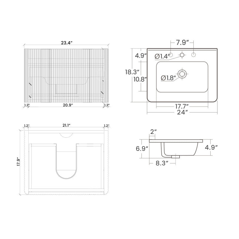 Glossy White Integrated Ceramic Sink: The vanity comes with a glossy white integrated ceramic sink that exudes luxury and charm.Its smooth surface is easy to clean and complements the vanity's overall design seamlessly.