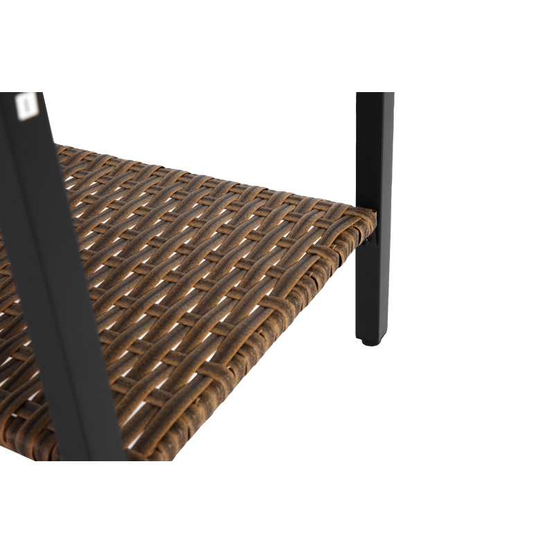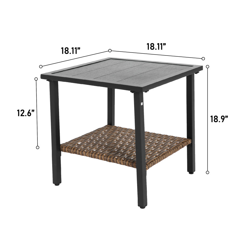 - SECURE METAL FRAME: Built to last with a heavy-duty metal frame.The base of the chair cushions is reinforced for added support.The table is constructed with upper wood-like metal surface and lower rattan shelf, offering both style and durability