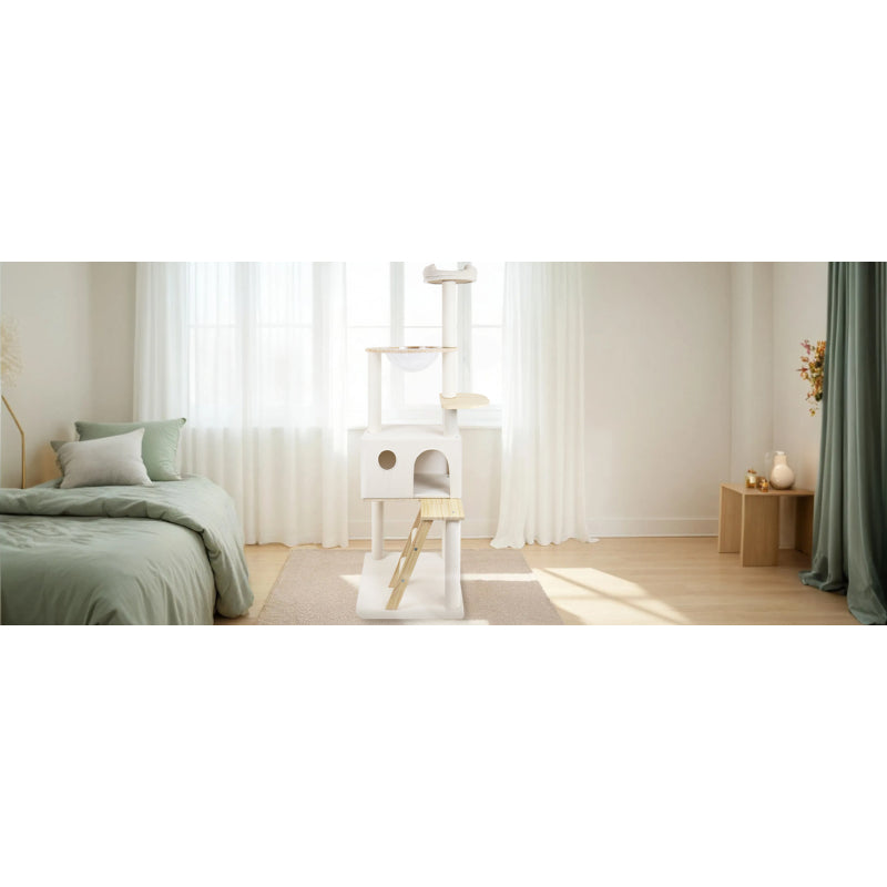 Tall Modern Wooden Indoor Cat Tree with Clear Capsule Perch