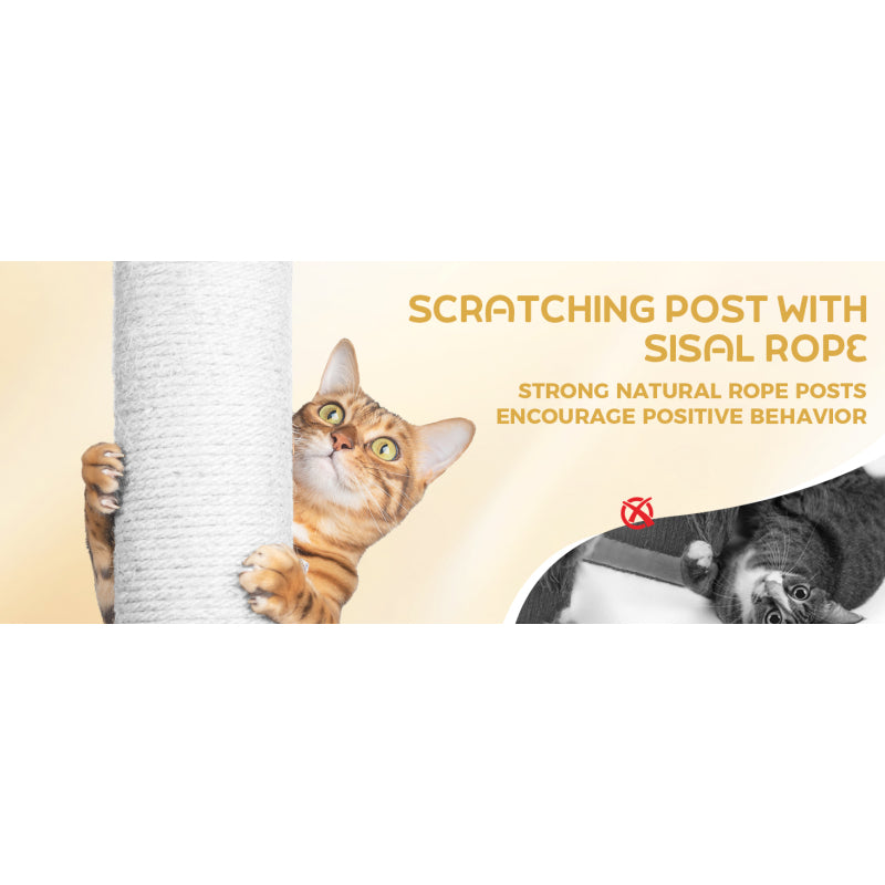 - Enhanced Scratching Experience: Upgarded with 8 long fully-wrapped scratching posts and a convenient horizontal scratch pad on the base, this cat tower caters to your cat's natural scratching instincts.The fully wrapped sisal offers significantly more sxratching space and reduces the risk of rope being torn or coming loose comapred with half-wrapped ones.